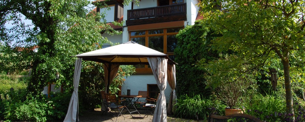 Geniessen Sie den Aufenthalt in unserer Ferienwohnung in einem gastfreundlichen und gemütlichen Ambiente. Die Ferienwohnung mit überdachter Pergola und großer Terrasse liegt unmittelbar an einer prachtvollen Gartenanlage.